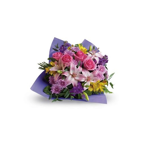 Contemporary yet classic, this bouquet includes an elegant mix of roses, lilies and alstroemeria.